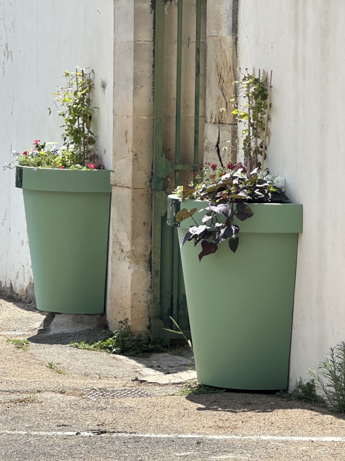 Ensemble de caches pots de fleur pour un client ferronnier sur la commune de milhaud dans le Gard .Couleur RAL 6021 satin. Notre client a réalisé pour la commune de milhaud des caches pots et nous a demandé de leur appliquer un traitement anti rouille et une peinture de finition en vert Ral 6021. Nous avons procéder à un grenaillage nous permettant une accroche pour la première couche d anti rouille a base de zinc (ppz) . Nous avons ensuite réalisé la couche finale verte pour un aspect fini . Pour des raisons de facilité nous lui avons livré sur chantier ses caches pots avec notre camion équipé d une grues de levage . Ensuite les employés de mairie on put les fleurir pour l embellissement de la voirie.